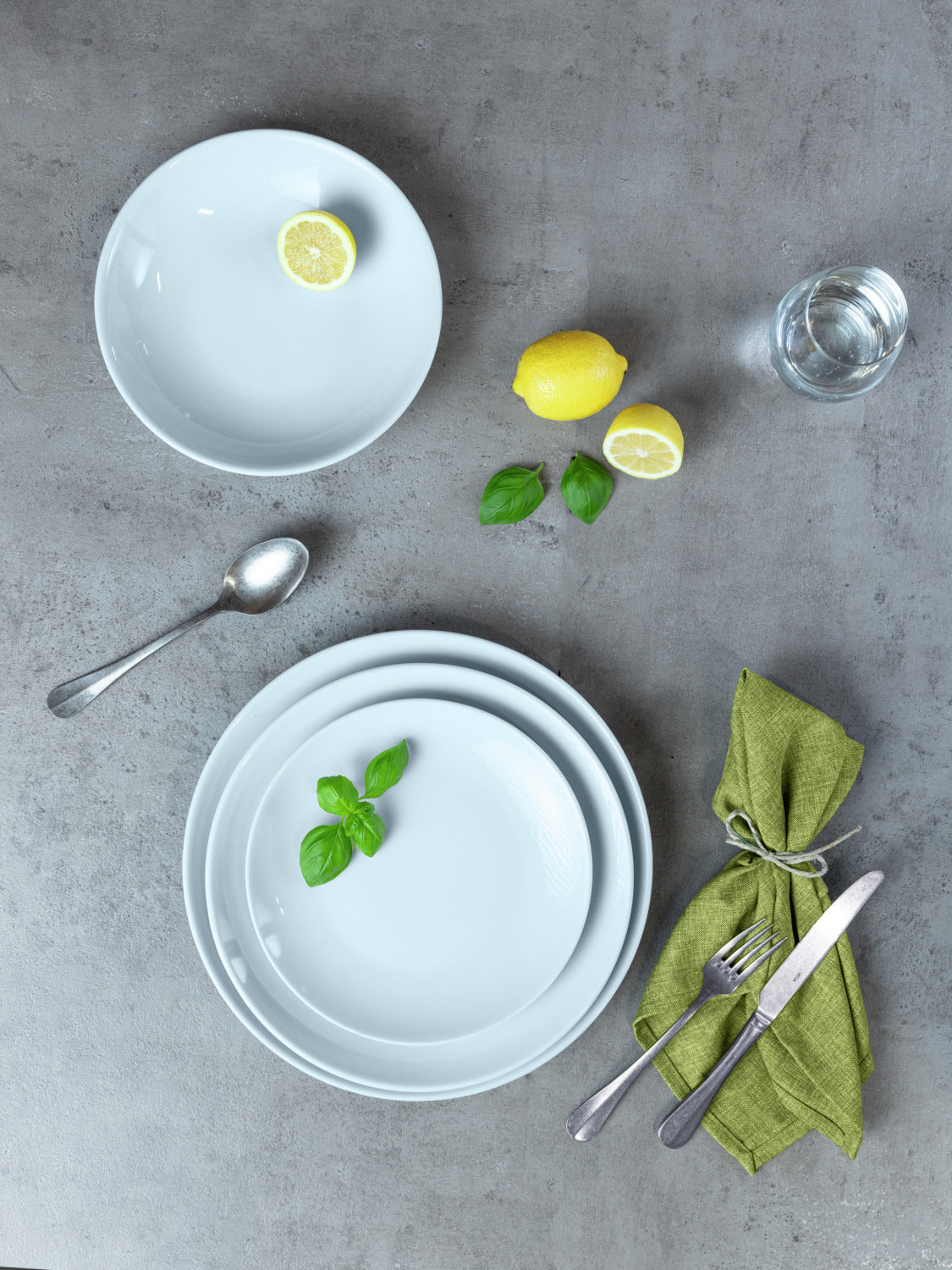 Solidnie wykonane talerze z białej porcelany. Można myć w zmywarce i używać w kuchence mikrofalowej.