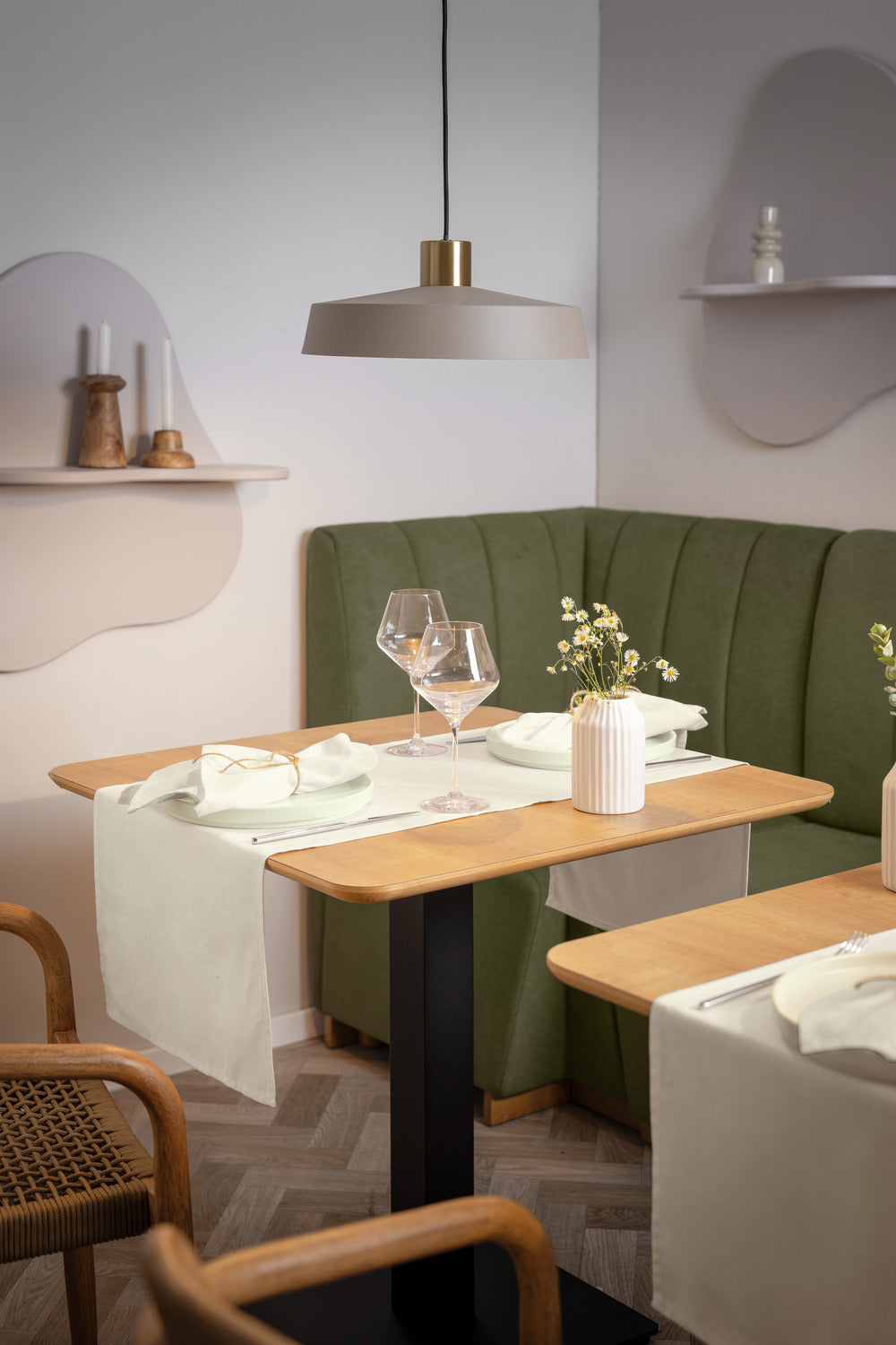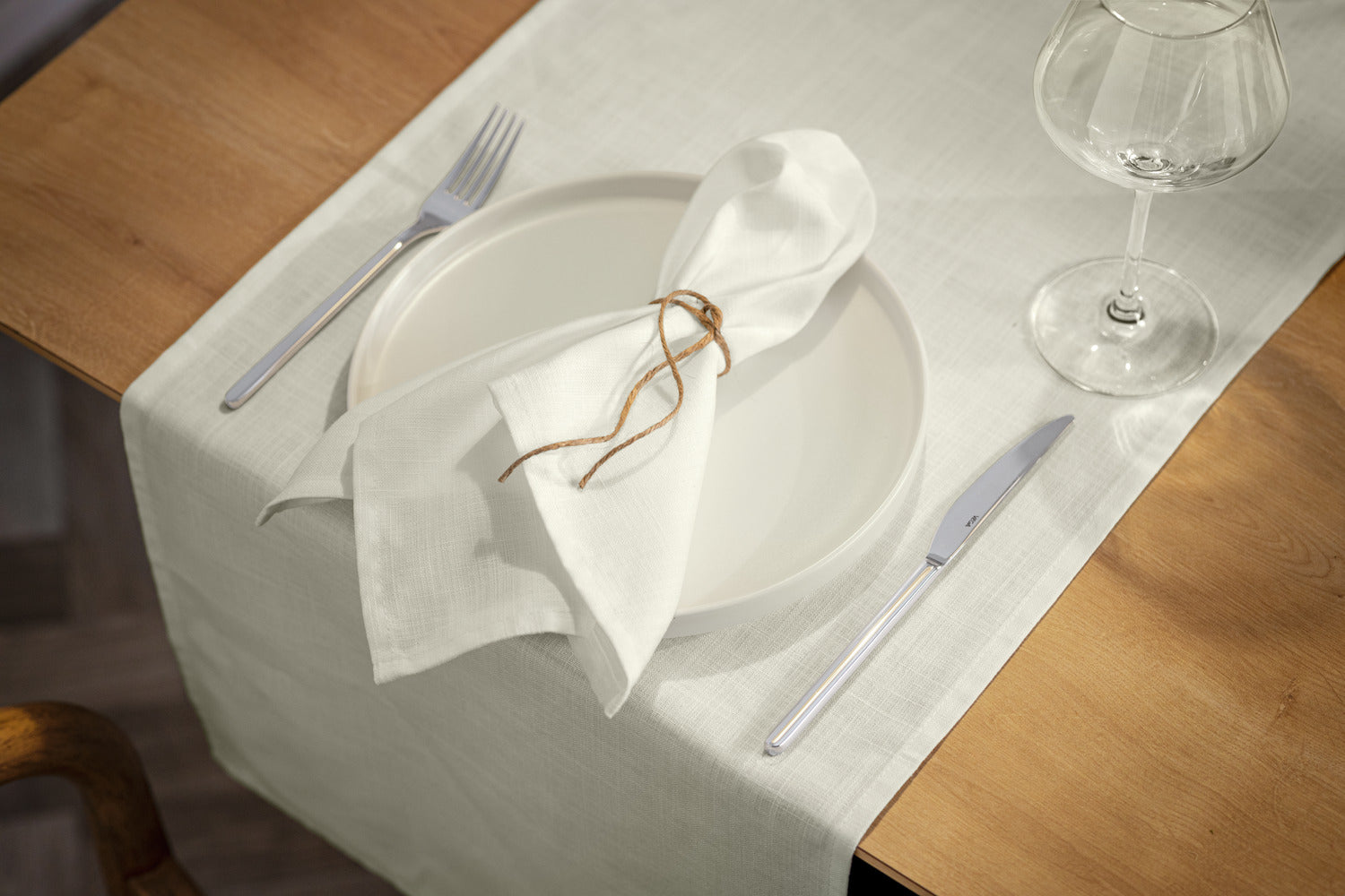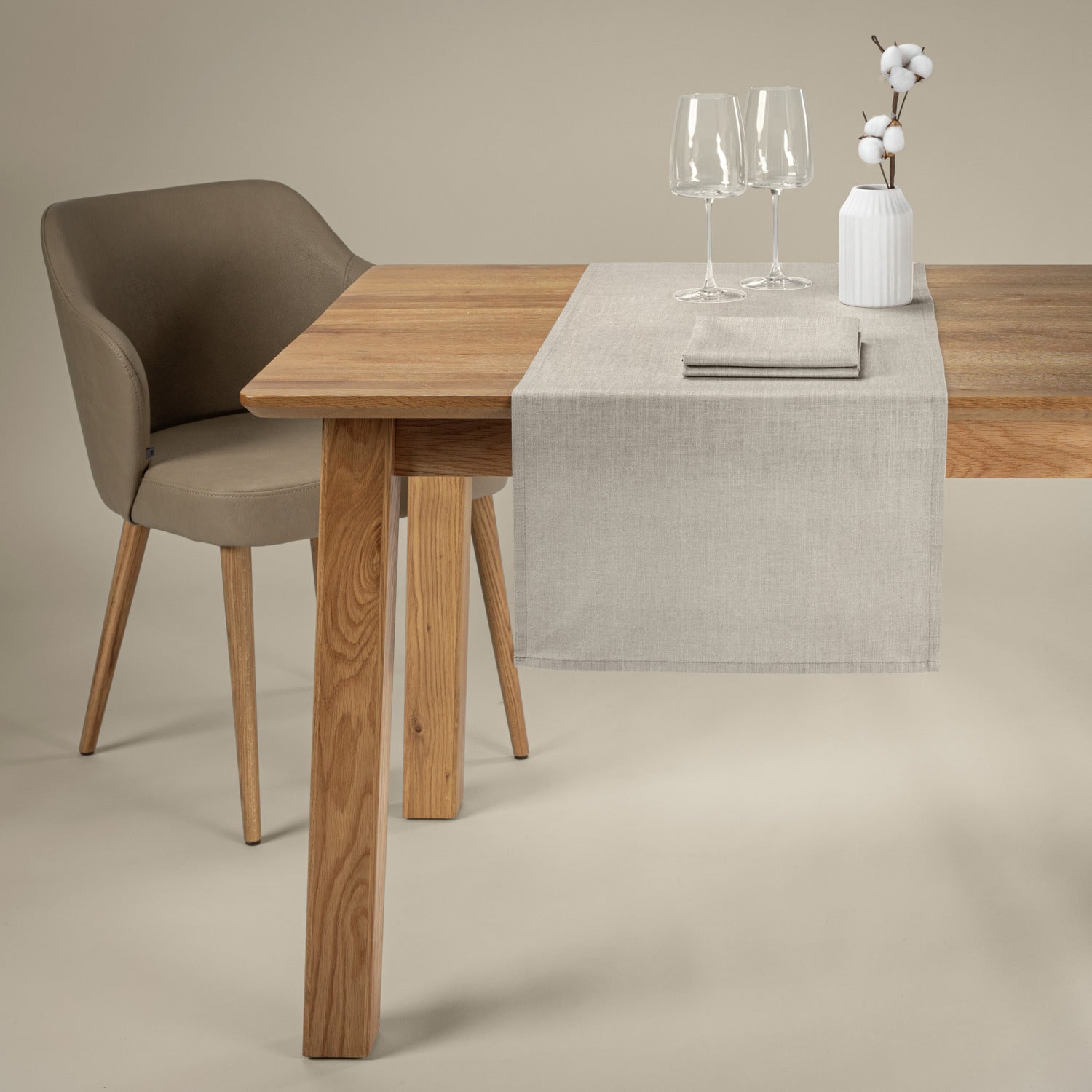 Bieżnik na stół Ledana z tkaniny mieszanej z wysoką zawartością lnu tworzy naturalne akcenty na stole. Wykonany w 50% z lnu i w 50% z poliestru bieżnik stołowy Ledana łączy w sobie łatwość pielęgnacji z ponadczasowym, naturalnym wzornictwem. Strukturalna tkanina zapewnia autentyczny wygląd. Ledana nadaje stołowi elegancki, naturalny charakter i harmonizuje z szeroką gamą stylów wyposażenia. Tkanina: 50% len, 50% poliester. Gramatura ok. 280 g/m². Łatwy w pielęgnacji i trwały. Wykończony 1 cm standardowym obszyciem. Możliwość personalizacji