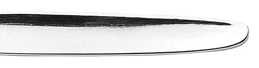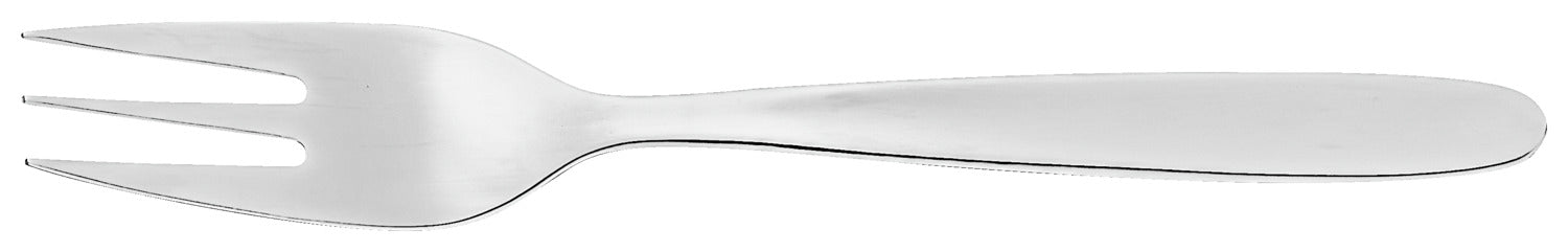 Prosty widelec do ciasta. Wypolerowany na wysoki połysk. Grubość materiału 2,2 mm odpowiednia dla gastronomii (mierzona w najmocniejszym miejscu widelca obiadowego). Można myć w zmywarce. Stal nierdzewna chromowana 18/0.