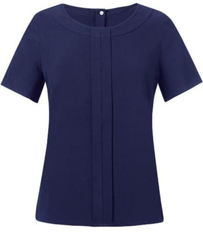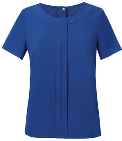 Bluzka damska z efektowną plisą z przodu i zapięciem na zamek błyskawiczny z tyłu. Okrągły dekolt, dekoracyjna plisa i złoty suwak na plecach dodają uroku. Tkanina poliestrowa zapewnia łatwą pielęgnację i niską gniotliwość.