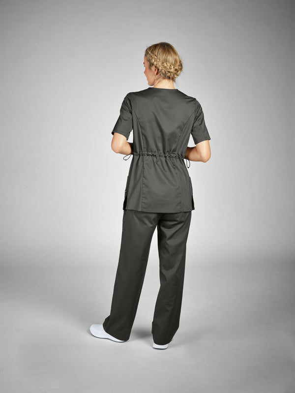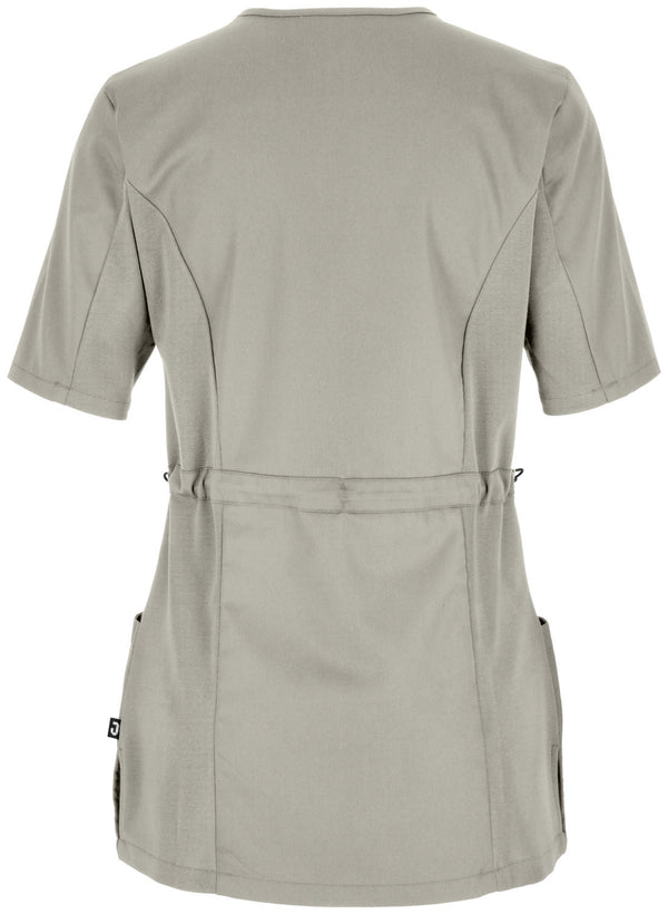 Wkładany przez głowę fartuch damski o sportowym kroju, wykonany z wyjątkowo lekkiego i oddychającego materiału. Z dekoltem w kształcie litery V i dwiema dużymi naszywanymi kieszeniami, w tym dwiema przegródkami na długopisy. Panele boczne i dolna część rękawów są wykonane z oddychającego i elastycznego materiału piqué, który nie tylko zapewnia wyjątkowo wygodne dopasowanie, ale także szczególnie wysoki poziom oddychalności. Z lekko zaokrąglonym dołem i bocznymi rozcięciami. Nieskomplikowana regulacja ze sznurkiem z tyłu oferuje dwie opcje kroju: prosty lub dopasowany. Z wyjątkowo długim tyłem. Długość pleców: 72 cm w rozmiarze S. Tkanina 65% poliester, 35% bawełna. 150 g/m². Pranie w 60°.