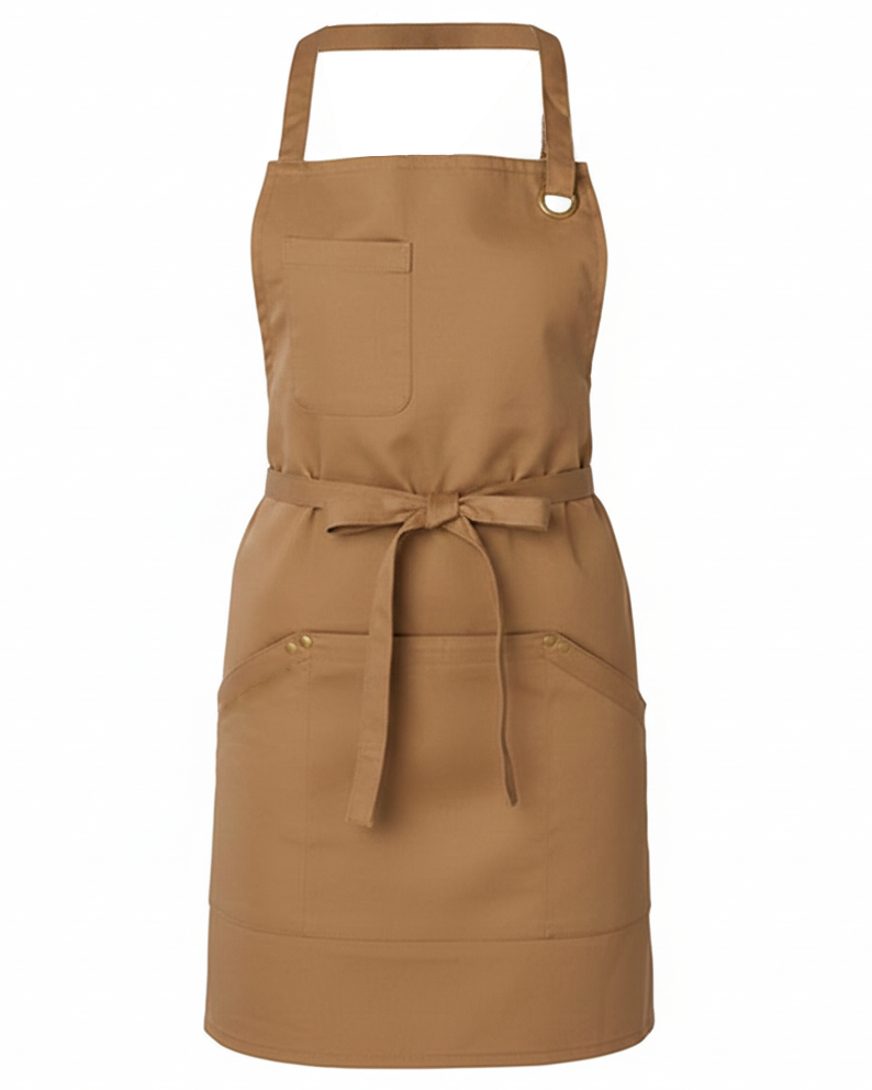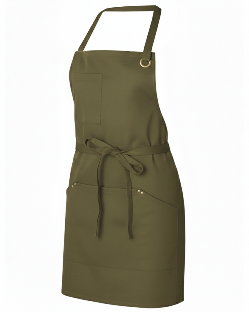 Fartuszek uszyty z solidnej tkaniny mieszanej, dostępny w czterech modnych kolorach. Wzmocniony nitami i z oczkami kaletniczymi z mosiądzu. Wyposażony w dużą, dzieloną kieszeń na brzuchu mieszczącą notatnik czy tablet oraz w małą kieszonkę na karczku. Długie troki w pasie służą do regulacji obwodu w talii. Wymiary fartuszka: 80 x 71 cm (szer. x dł.)