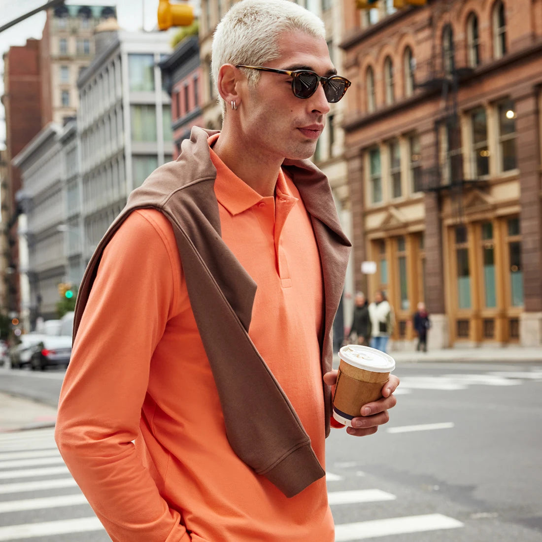 Elegancka koszulka polo o swobodnym kroju, łącząca ponadczasowy design z nowoczesnym komfortem noszenia. Wykonana z wysokiej jakości dzianiny Fine Piqué, zapewnia doskonałą przewiewność i miękkość w dotyku.
