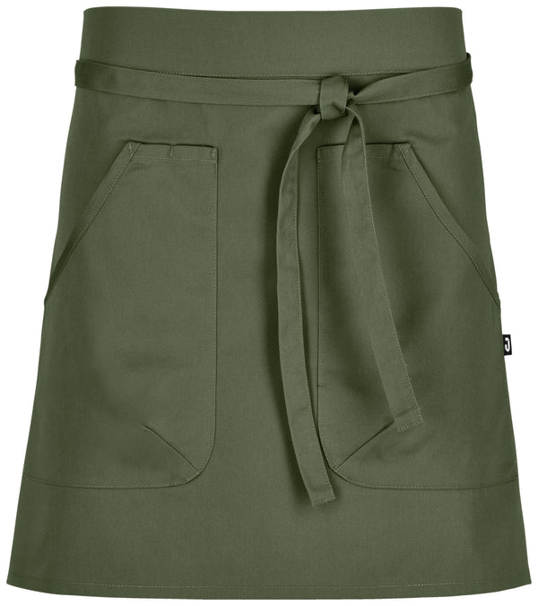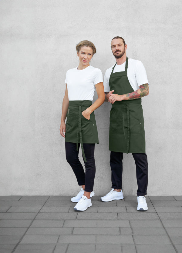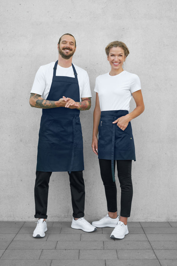 Wysokiej jakości zapaska wykonana z gładkiej, łatwej w pielęgnacji tkaniny mieszanej. Z dwiema naszywanymi kieszeniami i dołączoną pętelką na ściereczkę z boku. Zapaskę wyposażono w materiałowe troki do regulacji obwodu. Tkanina 65% poliester, 35% bawełna. 200 g/m². Pranie w 60°.