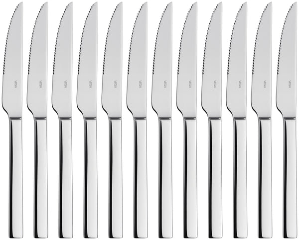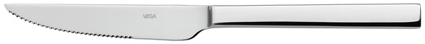 Stal nierdzewna chromowana 13/0. Nóż do pizzy/steków o prostym kształcie. Wypolerowany na wysoki połysk. Grubość materiału 4 mm odpowiednia dla gastronomii (mierzona w najmocniejszym punkcie widelca obiadowego). Można myć w zmywarce.