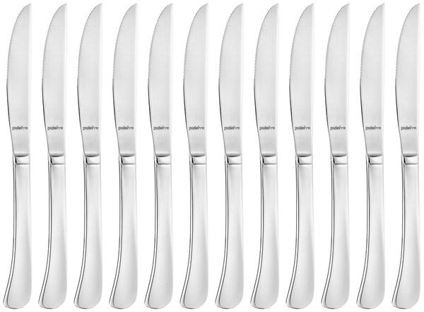 Stal nierdzewna chromowana 13/0. Prosty nóż do pizzy/steka. Wypolerowany na wysoki połysk. Grubość materiału 2,2 mm odpowiednia dla gastronomii (mierzona w najmocniejszym miejscu widelca obiadowego). Można myć w zmywarce.
