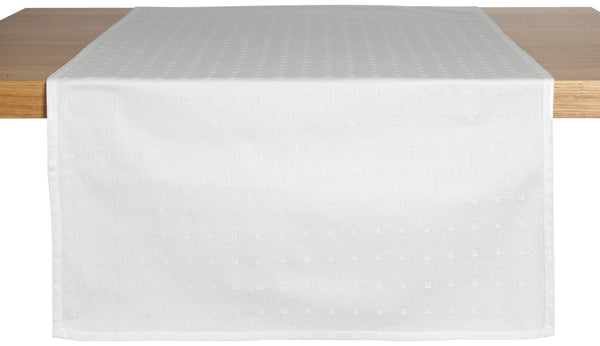 100% bawełna. Gramatura ok. 190 g/m². Biały żakardowy bieżnik z subtelnym wzorem w kostki. Wytrzymała jakość adamaszku. Merceryzowany.