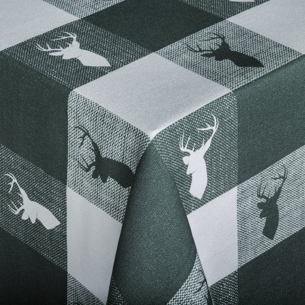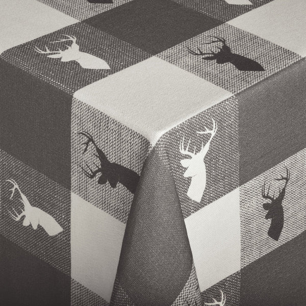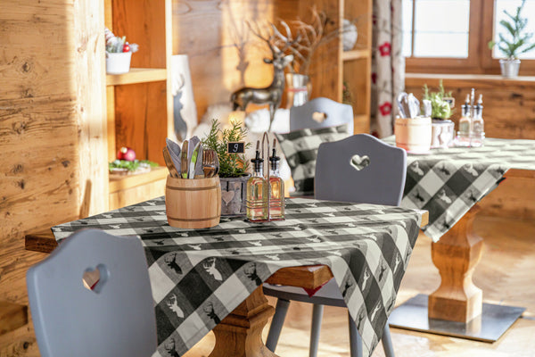 100% bawełna. Gramatura ok. 200 g/m². Obrus w kratę z motywem jelenia, wykonany z miękkiej bawełny. Szczególnie łatwy w pielęgnacji i wytrzymały.