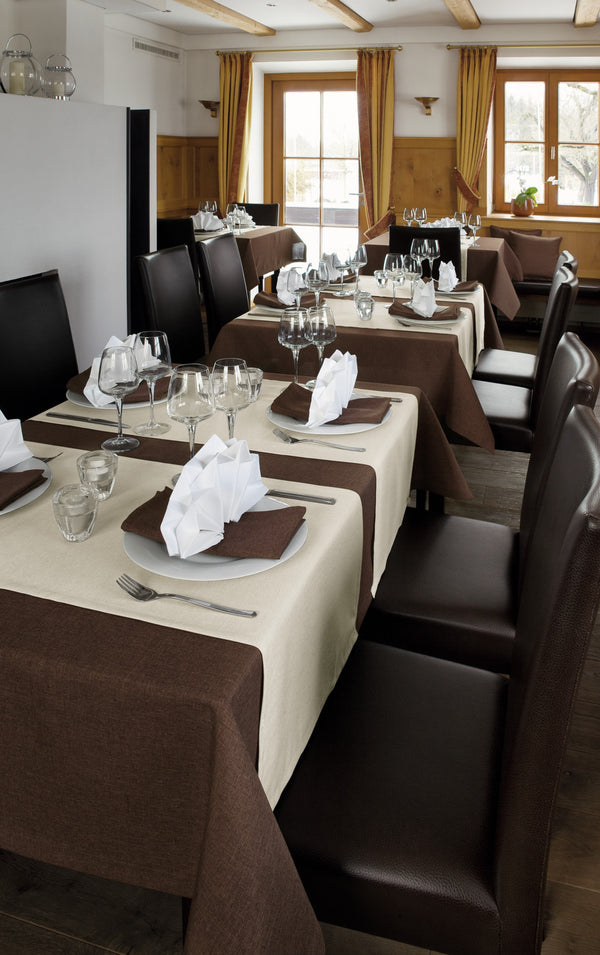 100% poliester. Gramatura ok. 210 g/m². Łatwa w pielęgnacji podkładka o melanżowym wyglądzie. Wysokiej jakości wykończenie ze szwem kopertowym. Piękna tekstura o naturalnym wyglądzie. Solidna i trwała.