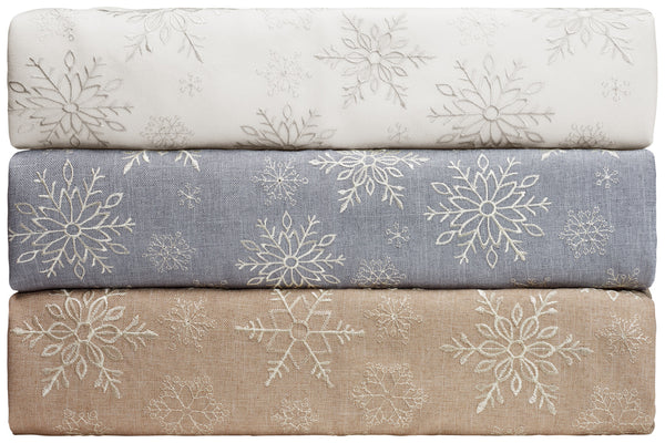 100% poliester. Gramatura ok. 210 g/m². Łatwy w pielęgnacji obrus z haftowanymi płatkami śniegu. Doskonale komponuje się ze wszystkimi produktami z serii Nova.