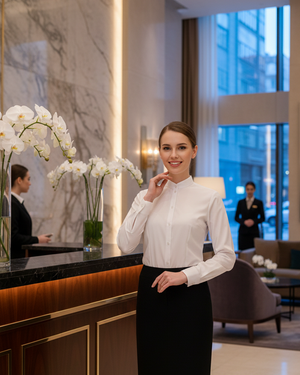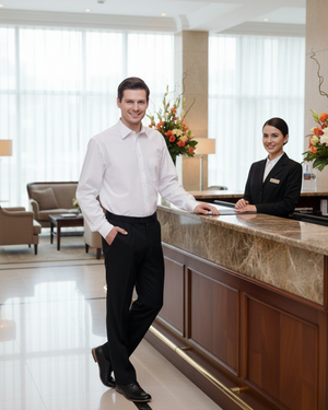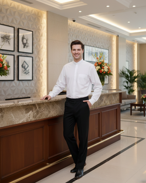 Wysoka kultura osobista, a także doskonała prezencja to cechy, które mają bardzo duży wpływ na odbiór lokalu przez odwiedzających go gości. Tworzenie dobrego i przyjaznego wizerunku restauracji, kawiarni czy baru to jeden z obowiązków załogi kelnerskiej. Aby należycie wykonywać powierzone zadania, niezbędne jest wyposażenie pracowników w profesjonalny ubiór kelnerski, na który składa się kilka elementów. Odzież kelnerska powinna nie tylko nienagannie się prezentować, ale i zapewniać pracownikowi jak najlepsze warunki pracy. Każdy z elementów profesjonalnego stroju kelnerskiego powinien być wykonany ze specjalistycznego materiału, który pozwala skórze swobodnie oddychać, a także nie krępuje ruchów.