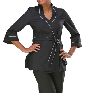 - Fartuch damski Kaya – jest zapinany na guziki i ma duże, praktyczne kieszenie. Znakomicie podkreśla kobiecą sylwetkę, a ozdobne listwy w pachach i wypustki na kieszeniach sprawiają, że jest niezwykle stylowy.