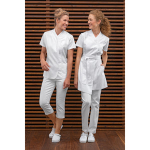 Wysokiej jakości materiały w połączeniu z wygodnymi krojami zapewniają pełną swobodę ruchów podczas kilkugodzinnych zmian w salonie kosmetycznym lub fryzjerskim. Fartuchy posiadają również praktyczne elementy takie jak duże kieszenie i zaszewki dopasowujące. Znacznie ułatwiają one wykonywanie codziennych obowiązków.