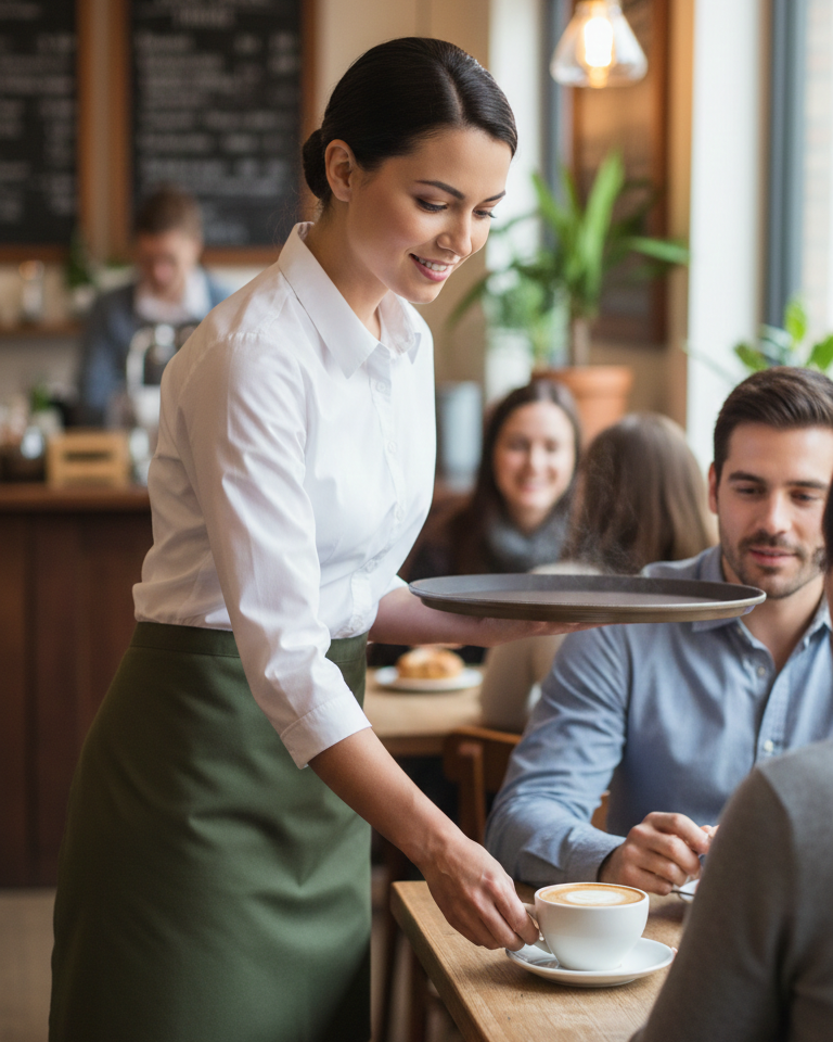 Praktyczna zapaska bez kieszeni wykonana z tkaniny mieszanej. Krótki fason nie krępuje ruchów, a tkanina bawełniano-poliestrowa gwarantuje łatwość pielęgnacji. Zapaska posiada długie troki do wiązania w pasie. Wymiary: 70 x 55 cm (szer. x dł.)