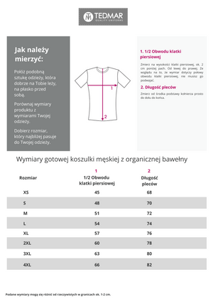 Koszulka męska o lekko taliowanym kroju, wykonana z organicznej bawełny. Posiada okrągły dekolt wykończony pliską. Dostępna w 22 kolorach!