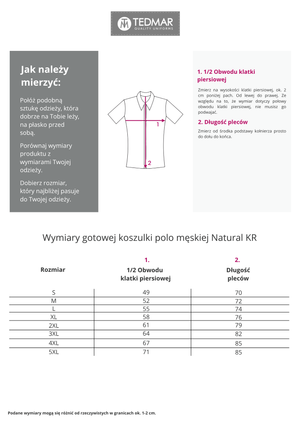 Wyróżnij się stylem i zachwycaj komfortem dzięki naszej koszulce polo wykonanej z bawełny czesanej – wyjątkowo miękkiej, gładkiej i trwałej. Dopasowany krój podkreśla sylwetkę, zachowując równocześnie pełną swobodę ruchów, a kołnierzyk i mankiety z dzianiny nadają całości eleganckiego, klasycznego charakteru.