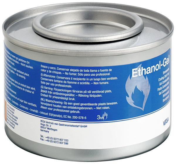 Mocna pasta paliwowa do podgrzewaczy. Najwyższa jakość, z czystego etanolu. Spala się czysto i z niewielkim zapachem, bez powstawania sadzy i dymu. Może osiągnąć nawet 80°C. Puszka 230 ml zapewnia czas palenia 3 godziny. Uwaga: ten artykuł jest produktem, który musi być oznakowany zgodnie z rozporządzeniem EG-GHS. Produkt jest sklasyfikowany jako towar niebezpieczny. Dlatego należy zwrócić uwagę na ostrzeżenia o zagrożeniach i porady dotyczące bezpieczeństwa zawarte w karcie charakterystyki oryginalnego pojemnika. Ostrzeżenia o zagrożeniach: * R11 Produkt wysoce łatwopalny * R22 Działa szkodliwie po połknięciu * R23/24/25 Działa toksycznie na drogi oddechowe, w kontakcie ze skórą i po połknięciu * R36/37/38 Działa drażniąco na oczy, drogi oddechowe i skórę * R39/23/24/25 Toksyczne: niebezpieczeństwo wystąpienia bardzo poważnych nieodwracalnych zmian w następstwie wdychania, kontaktu ze skórą i po połknięciu * H225 Wysoce łatwopalna ciecz i pary * H301 Działa toksycznie po połknięciu * H302 działa szkodliwie po połknięciu * H311 działa toksycznie w kontakcie ze skórą * H315 działa drażniąco na skórę * H319 działa drażniąco na oczy * H331 Działa toksycznie przez drogi oddechowe * H335 może powodować podrażnienie dróg oddechowych * H370 powoduje uszkodzenie narządów Instrukcje bezpieczeństwa: * P101 W razie konieczności zasięgnięcia porady lekarza należy pokazać pojemnik lub etykietę produktu * P102 należy przechowywać w miejscu niedostępnym dla dzieci * Trzymać P210 z dala od źródeł ciepła/iskrzenia/otwartego ognia/gorących powierzchni. Nie palić * P403 + P233 Przechowywać pojemnik szczelnie zamknięty w dobrze wentylowanym miejscu. Pierwsza pomoc: po kontakcie ze skórą: natychmiast zdjąć zanieczyszczoną produktem odzież i obuwie. Umyć skórę wodą z mydłem. W razie potrzeby skonsultować się z lekarzem. Po styczności z oczami: wyjąć soczewki kontaktowe. Natychmiast płukać oczy obficie wodą przez co najmniej 10-15 minut, trzymając powieki szeroko otwarte, unikać silnych strumieni wody – ryzyko uszkodzenia rogówki. Chronić niepodrażnione oko przed zanieczyszczeniem podczas płukania. W razie potrzeby skonsultować się z lekarzem. Po połknięciu: nie wywoływać wymiotów. Przepłukać usta wodą. Nigdy nie podawać nic doustnie osobie nieprzytomnej. W razie potrzeby wezwać lekarza - przygotować opakowanie/etykietę. Po inhalacji: wyprowadzić poszkodowanego na świeże powietrze, zapewnić ciepło i odpoczynek. W razie potrzeby skonsultować się z lekarzem.