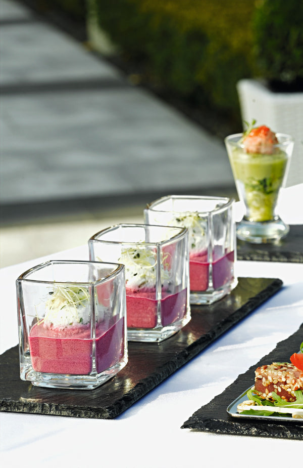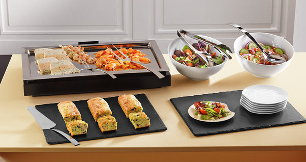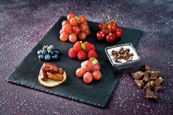 Naturalny łupek odpowiedni do serwowania dań na bufetach lub stołach. Stabilny dzięki gumowym nóżkom. Nie nadaje się do zmywarek.