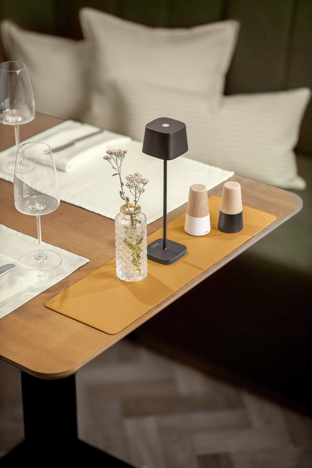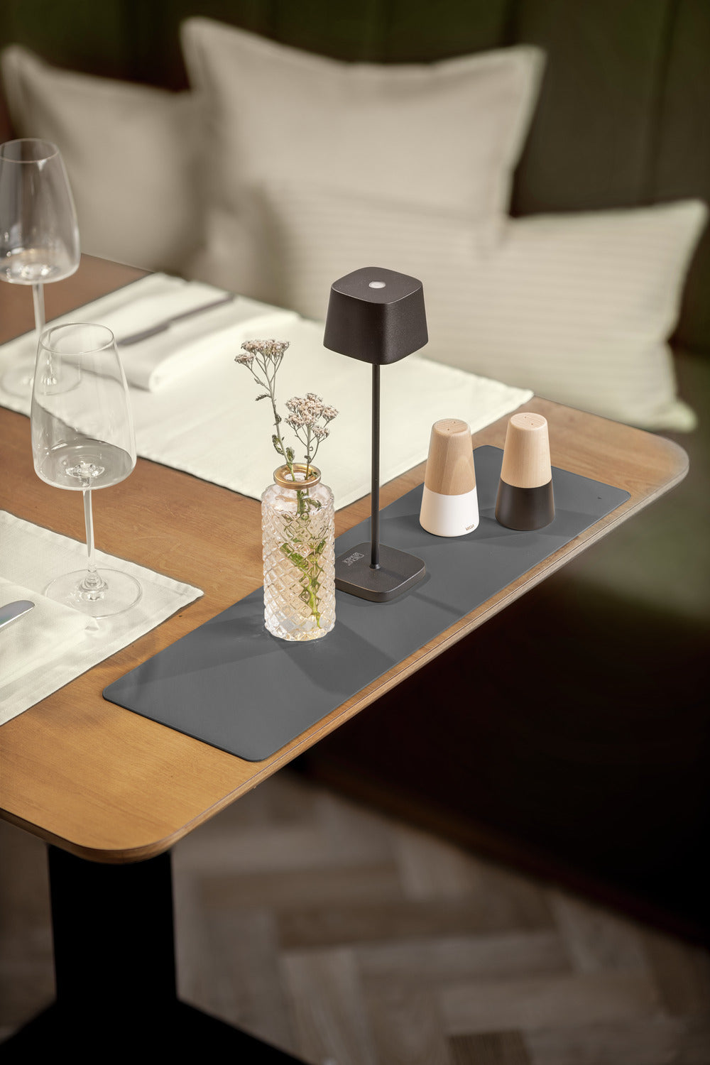 Podłużna podkładka dekoracyjna pod akcesoria stołowe. Przyciąga wzrok na każdym stole i jest dostępna w modnych kolorach. Bardzo łatwa do czyszczenia przez przetarcie wilgotną szmatką. Nadaje się do użytku wewnątrz pomieszczeń i na zewnątrz. Materiał: 100% PVC.