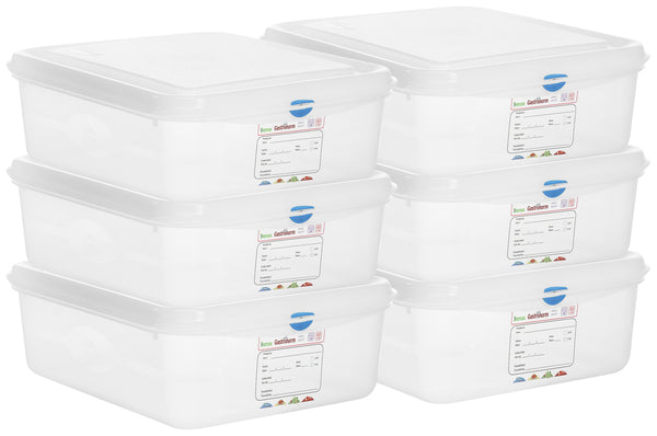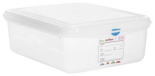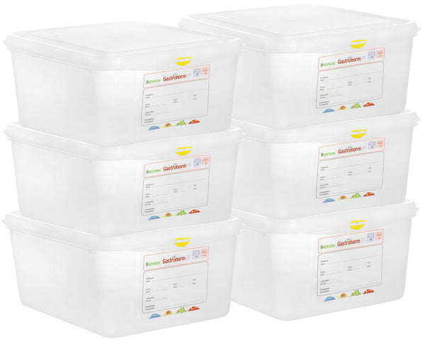 Wytrzymałe pojemniki GN wykonane z polipropylenu (pojemnik) lub polietylenu (pokrywa). Bezpieczne dla żywności i odporne na temperaturę od -10 °C do +70 °C. Można myć w zmywarce. Z trwałą etykietą do oznaczania zawartości, daty przechowywania i daty przydatności do spożycia. Aby zachować zgodność z przepisami dotyczącymi higieny, pokrywki i pojemniki można oznaczyć kolorowymi klipsami. Dostawa obejmuje pokrywkę i klipsy.