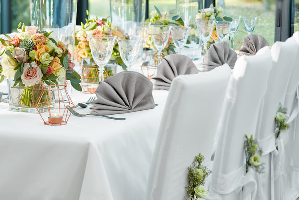 100% poliester. Gramatura ok. 240 g/m². Pierwszorzędny pokrowiec na krzesło o drobnym, gładkim splocie z wytrzymałej tkaniny adamaszkowej. Wszyta wstążka na kokardy. W pełni skręcona jakość. Możliwość personalizacji.