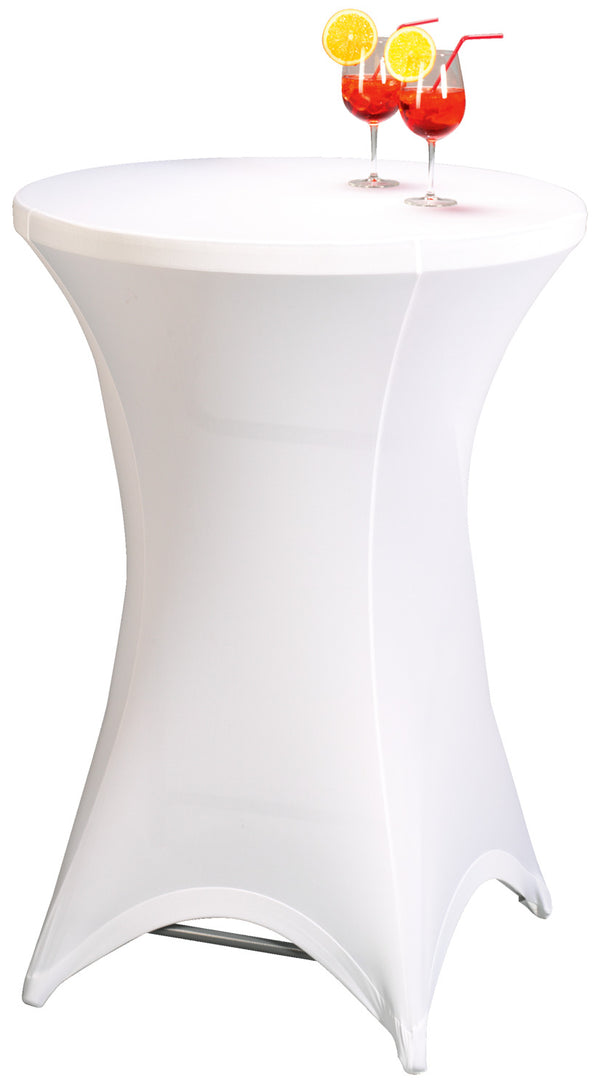 92% poliester, 8% elastan. Gramatura ok. 130 g/m². Klasyczny elastyczny pokrowiec na stół barowy. Nadaje się do wszystkich stołów barowych z blatem od Ø 70 cm do maks. Ø 80 cm i maks. wysokości 110 cm. Wzmocnione kieszenie na nogi z tkaniny syntetycznej. Nadaje się do użytku wewnątrz i na zewnątrz. Szczególnie łatwy w pielęgnacji, szybkoschnący i łatwy do prasowania. Możliwość personalizacji.