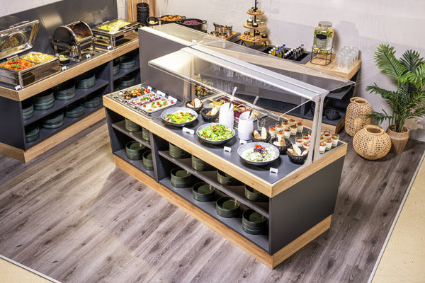 Higieniczna przesłona wykonana z wysokiej jakości szkła akrylowego. Blat ze szkła akrylowego zamocowany jest w specjalnym profilu aluminiowym, a stabilne nóżki wykonane są ze stali nierdzewnej 18/0. Do naszych dużych stołów bufetowych Valinta. W profilu aluminiowym przewidziano rowek o szerokości 1 cm na taśmy LED. Na każdej z nóżek znajdują się dwa uchwyty do przykręcenia do stołów bufetowych. Łatwy montaż, dostarczane w stanie rozmontowanym.