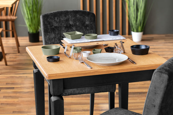 Półmisek z melaminy o wyglądzie łupka w różnych rozmiarach GN. Szczególnie trwały dzięki wysokiej odporności na uderzenia i złamania. Zakres stosowania od +30 °C do +70 °C. Możliwość układania w stosy dla zaoszczędzenia miejsca. Można myć w zmywarce. Nieodporny na przecięcie.