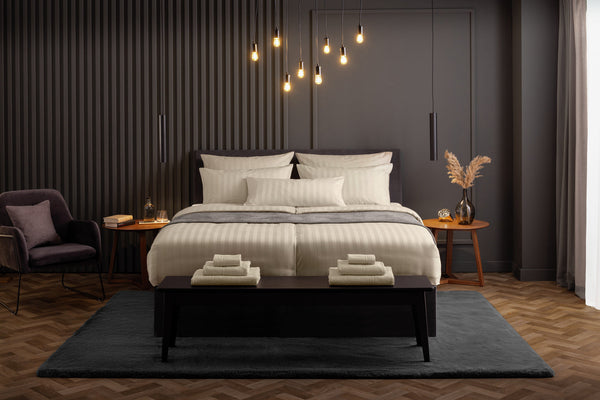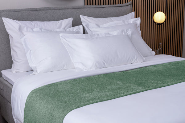 100% poliester. Gramatura ok. 400 g/m². Odporny na zagniecenia bieżnik wykonany z nowoczesnej tkaniny bouclé. Wyjątkowo miękki i łatwy w pielęgnacji. Chroni nogi łóżka przed zabrudzeniem.