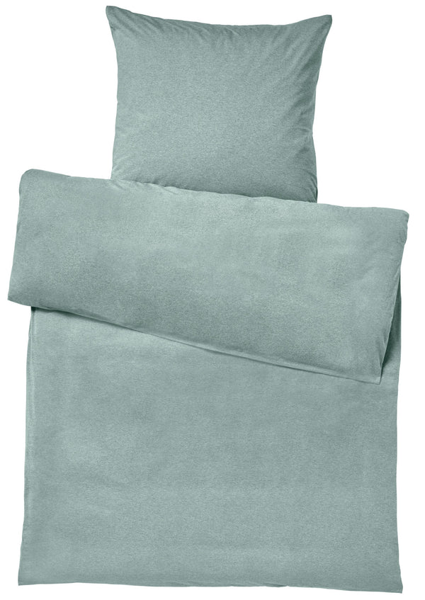 Skład: 100 % bawełny. Gramatura ok. 150 g/m². Nowoczesny komplet pościeli z dżerseju non-iron z efektem melanżu. Zamek błyskawiczny ułatwiający zakładanie.