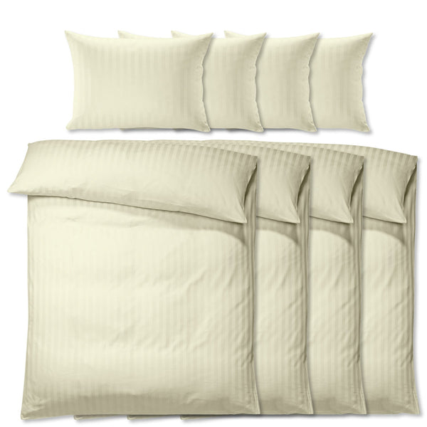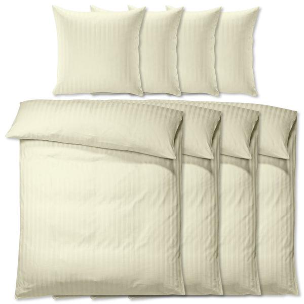 Skład: 100% bawełna. Gramatura ok. 120 g/m². Klasyczna pościel z wzorem w paski (szerokość 20 mm). Z zamknięciem hotelowym. Pasuje po pierwszym praniu. Liczba wątków: 207 wątków na cal