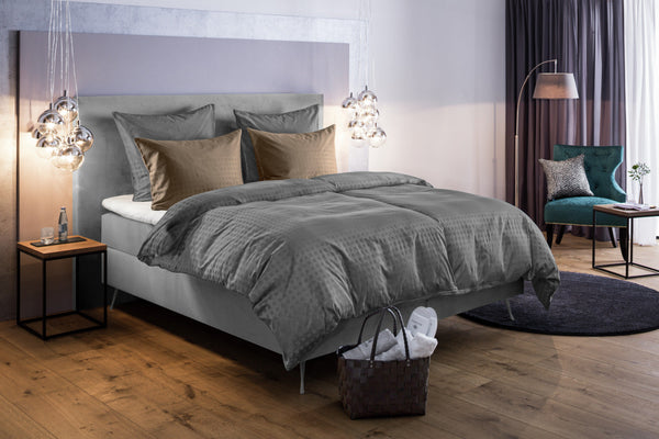 100% bawełna. Gramatura ok. 120 g/m². Nasza modna, wzorzysta pościel z najwyższej jakości adamaszku. Jest wytrzymała, łatwa w pielęgnacji i ma pierwszorzędne wykończenie. Z zamkiem błyskawicznym, który jest odporny na prasowanie i dlatego nadaje się do pralni. Liczba wątków: 200 wątków na cal Splot: Perkal