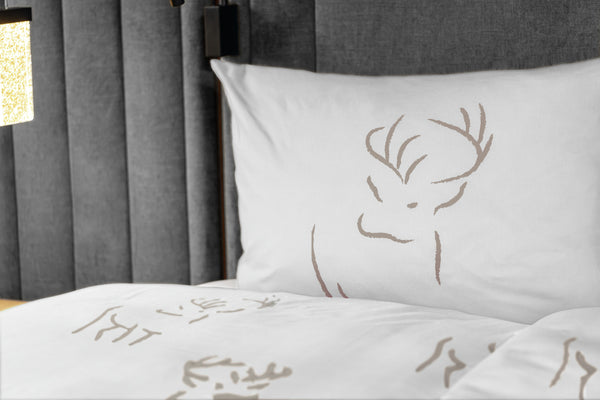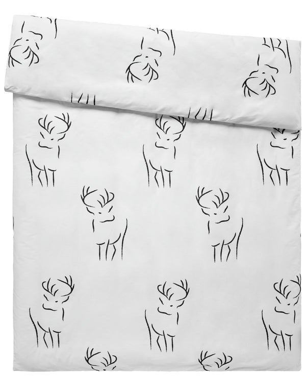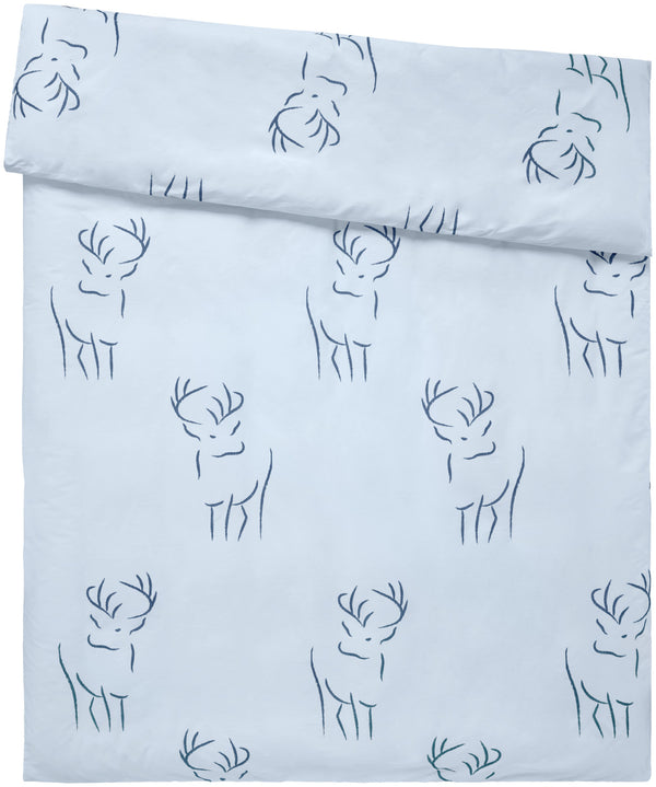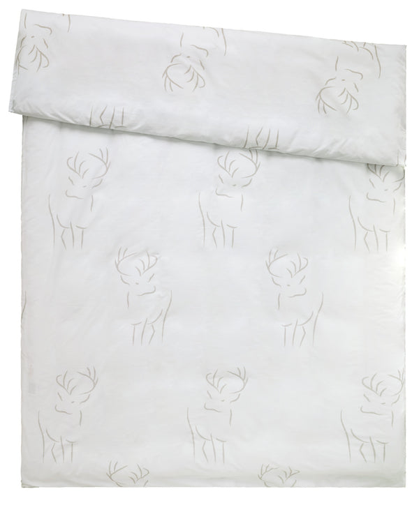 Miękka bawełniana pościel z nadrukowanym wzorem jelenia. Zestaw pościeli z wytrzymałym zamkiem błyskawicznym. Pościel osiąga określony rozmiar po trzech praniach. Gęstość nici: 144 nici na cal Rodzaj splotu: Perkal 100% bawełna. Gramatura ok. 110 g/m².