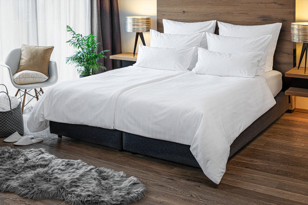 80% bawełna, 20% poliester. Gramatura ok. 130 g/m². Tkanina na metry pasująca do pościeli St. Petersburg z funkcją higieniczną Sanitized® do trwałej ochrony przed mikrobami i bakteriami. Idealna dla alergików. Maksymalna długość belki wynosi 30 metrów i można ją przyciąć do pożądanego rozmiaru.