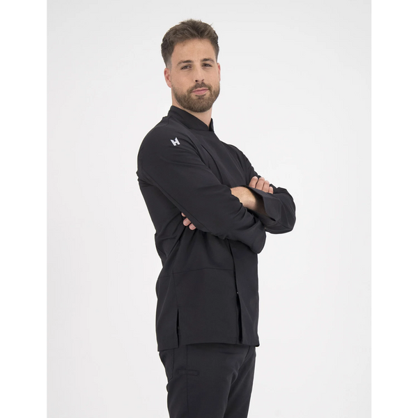 Model Dave to klasyczna bluza szefa o nowoczesnym kroju. Innowacyjna doskonałość zamknięta w klasycznym produkcie. Wysoka jakość z dbałością o zrównoważony rozwój z uwagi na wyjątkowo długą żywotność. Regularny krój został uatrakcyjniony pionowymi cięciami na plecach i wzbogacony rozporkami po bokach w celu zachowania swobody ruchu podczas pracy. Tę bluzę cechuje asymetryczne zapięcie, stójka i klasyczne mankiety z możliwością łatwego wywinięcia. Bluza posiada także szlufkę do fartucha na karczku oraz kieszonkę na lewym rękawie. Model dostępny w trzech kolorach do wyboru. Materiał: 65% poliester / 35% bawełna