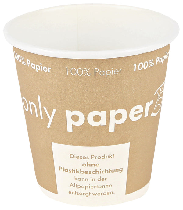 Ekologiczny kubek na napoje wykonany w 100% z wytrzymałego, twardego papieru. Wewnętrzne uszczelnienie na bazie wody, bez plastikowej powłoki. W pełni nadaje się do recyklingu na makulaturę.