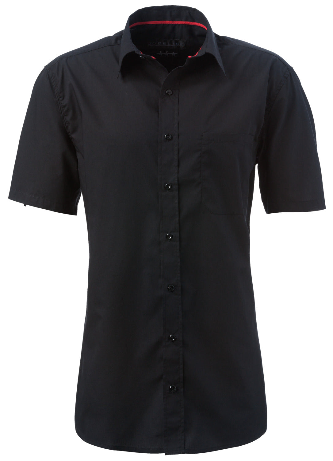 65 % Polyester, 35 % Baumwolle. 60°-Wäsche. Traditionelles Herrenhemd mit roter Paspelierung am Innenkragen. In Halbarm und Langarm erhältlich. Gerade geschnitten. Rückenlänge: 82 cm in Gr 39/40.
