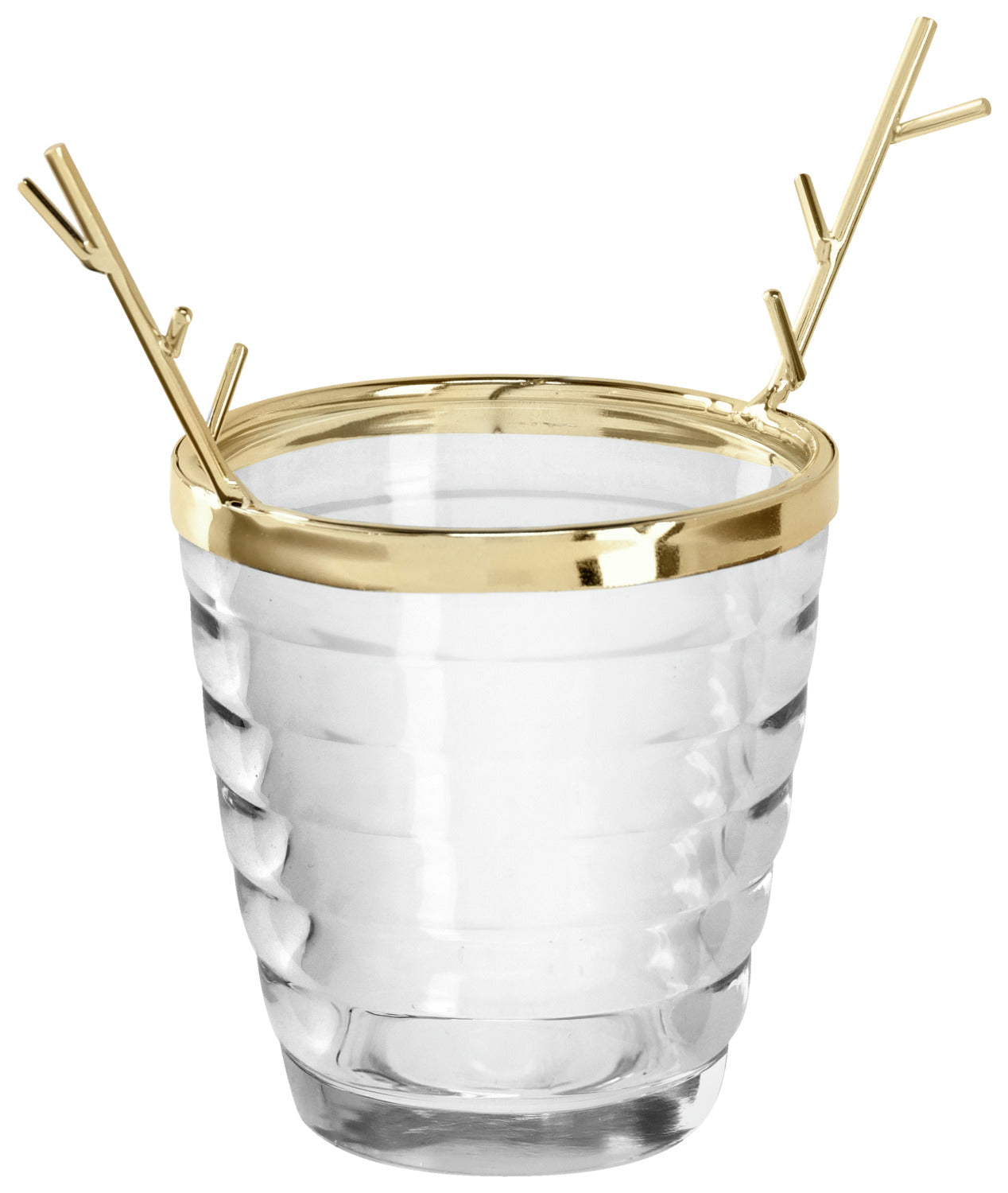 Szklany świecznik na tealight ze zdejmowaną górną częścią, z motywem poroża. Może być używany przez cały rok.