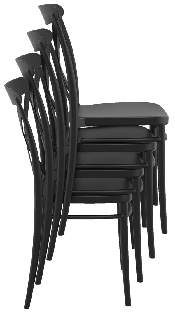 Stuhl Cross aus recyclebarem Kunststoff. Besonders leicht und robust. Bis zu fünf Stühle stapelbar. Für den Innen und Außenbereich geeignet. Lieferung erfolgt montiert. Passenden Barstuhl gleich mitbestellen.