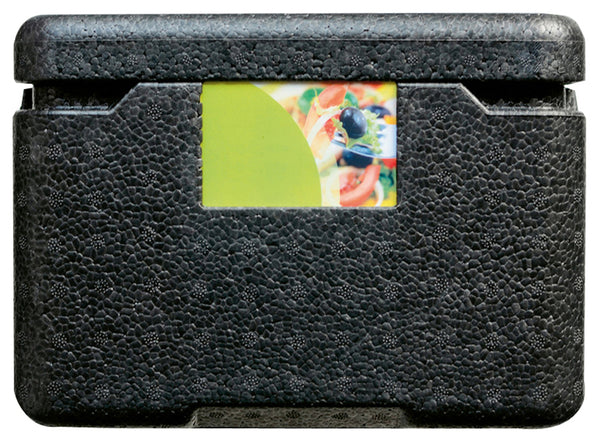 Solidny i wytrzymały mini termobox ze stałą pokrywą wykonany z czarnego tworzywa EPP. Idealny do transportu pojedynczych posiłków w maksymalnie dwóch kwadratowych tackach i pudełkach w formacie 18x24 cm. Pudełko Mini Menu posiada pola do etykietowania z dwóch stron. W 100% nadaje się do recyklingu. Zgodne z rozporządzeniem WE 1935/2004. Najlepsze właściwości izolacyjne od -40° do +120°C, maksymalna utrata temperatury 2-3°C na godzinę, gdy pudełko jest zamknięte. Można myć w zmywarce. Wymiary wewnętrzne 25,5 x 20,5 x 13 cm.