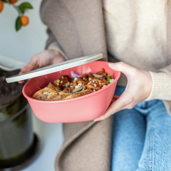 Innowacyjne pudełko wykonane z biocyrkularnego plastiku i włókien drzewnych. Tworzywo sztuczne pozyskiwane jest wyłącznie ze zużytego oleju słonecznikowego i rzepakowego pochodzącego z przemysłu i gastronomii. Włókna drzewne są pozyskiwane z drzew pozostałych po pielęgnacji lasów i z odpadów z produkcji papieru. Idealnie nadaje się do sektora dań na wynos, z praktyczną pokrywką. Odporność na temperaturę jest gwarantowana w zakresie od -10°C do +100°C. Nie zawiera BPA, melaminy, nadaje się do kuchenki mikrofalowej, jest szczelny i można go myć w zmywarce.