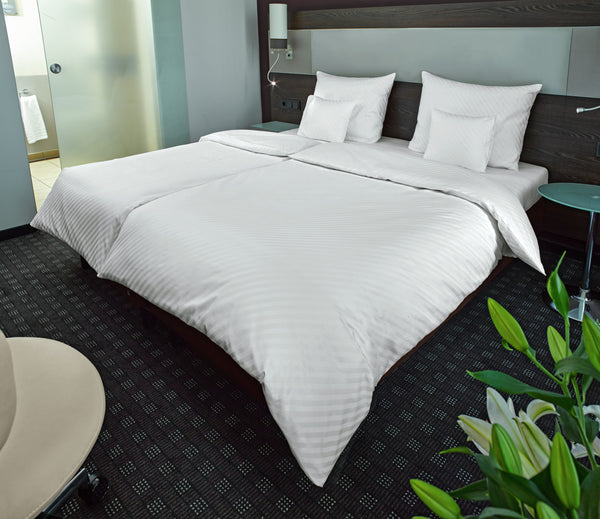 100% bawełna. Gramatura ok. 150 g/m². Prześcieradło Premium z gumką, w ukośne paski. Wykonane z bawełny czesanej, merceryzowanej. Liczba wątków: 220 wątków na cal Splot: adamaszek