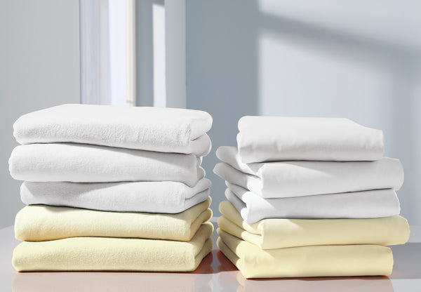 80% bawełna, 20% poliester. Gramatura ok. 145 g/m². Przytulnie miękkie, trwałe i łatwe w pielęgnacji. Prześcieradło frotte z gumką w jakości hotelowej, szczególnie odpowiednie na chłodniejsze pory roku. Zapewnia szybkie zakładanie i idealne dopasowanie. Wysokość 20 cm.