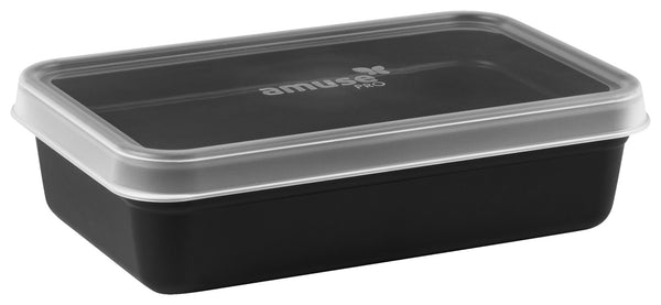 Pojemnik wielokrotnego użytku Amuse Pro z pokrywką jest wykonany w 100% z polipropylenu. Pokrywka jest przezroczysta, dzięki czemu żywność jest łatwo rozpoznawalna. Odporność na temperaturę jest gwarantowana w zakresie od -20°C do +100°C. Nie zawiera BPA, można go układać jeden na drugim, jest odporny na rozlanie, można go używać w kuchence mikrofalowej i myć w zmywarce.