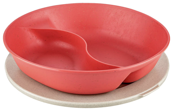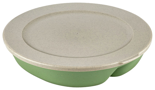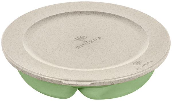 Dwuczęściowy talerz wykonany z tworzywa sztucznego i włókien drzewnych. Tworzywo sztuczne pozyskiwane jest wyłącznie ze zużytego oleju słonecznikowego i rzepakowego pochodzącego z przemysłu i gastronomii. Włókna drzewne są pozyskiwane z drzew pozostałych po pielęgnacji lasów i z odpadów z produkcji papieru. Idealnie nadaje się do sektora dań na wynos, a także do szkół i stołówek, z praktyczną pokrywką. Odporność na temperaturę jest gwarantowana w zakresie od -10°C do +100°C. Nie zawiera BPA, melaminy, nadaje się do kuchenki mikrofalowej, jest szczelny i można go myć w zmywarce.