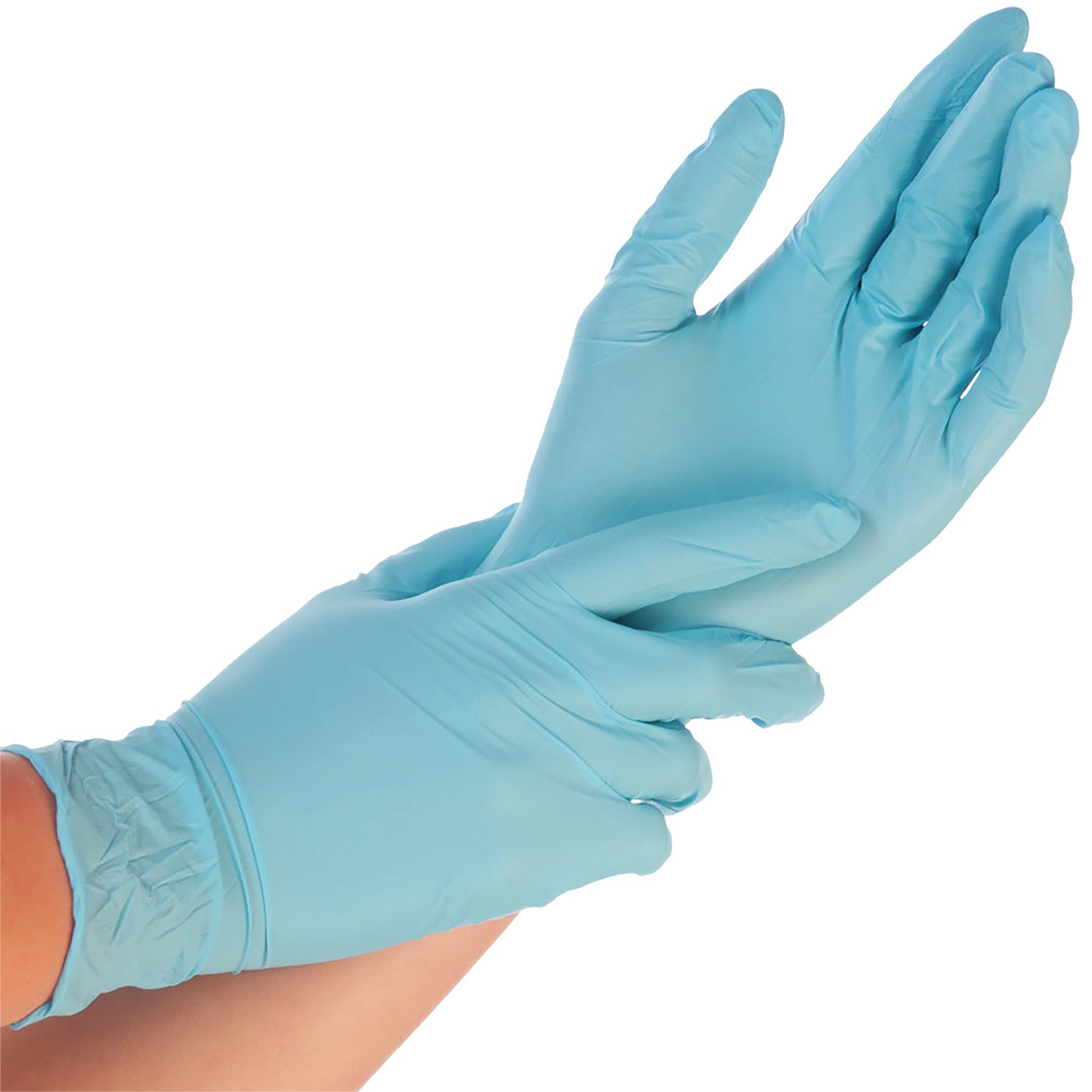 Rękawice jednorazowe wykonane w 100% z nitrylu. Całkowicie bezpieczne dla żywności, odporne na oleje i smary. Doskonała wrażliwość dotykowa dla precyzyjnej pracy. Teksturowane końcówki palców zapewniają optymalny chwyt. Niezwykle elastyczne i odporne na rozdarcia. Bezpudrowe, bezlateksowe (idealne dla alergików), wodoodporne, niesterylne. Idealne dopasowanie dzięki w pełni anatomicznemu kształtowi z zawiniętym brzegiem. Bardzo wytrzymałe i wysoce odporne na chemikalia. W praktycznym kartonowym pudełku z dozownikiem. 3 g/sztukę w rozmiarze M. Spełnia normy: CAT 3, CE 0465 PPE VO (EU) 2016-425, CE MDR 2017-745, EN 374-1:2016 Typ B GKLMT, EN 374-5:2016 (bez wirusów), EN 420, EN 455 1-4, bezpieczne dla żywności.