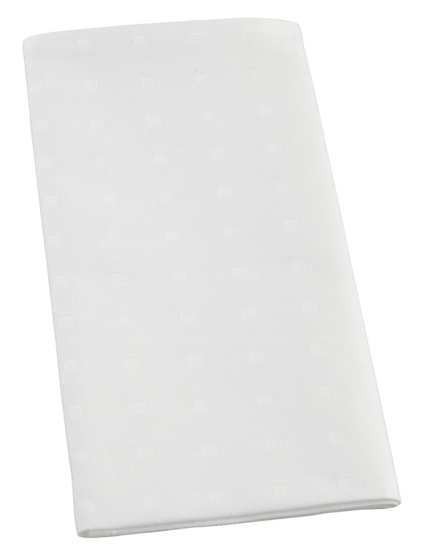 100% bawełna. Gramatura ok. 190 g/m². Białe serwetki żakardowe z subtelnym wzorem kostki. Wytrzymała jakość adamaszku. Merceryzowane.