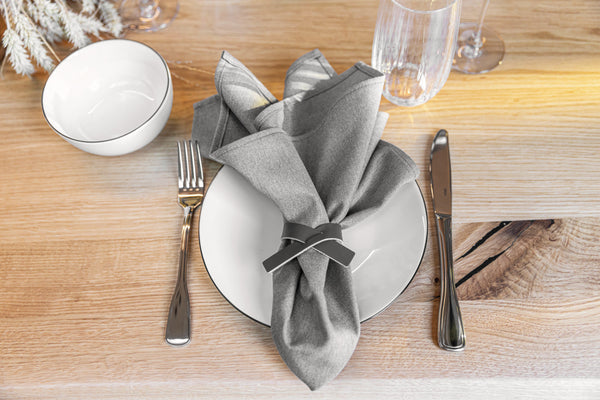 50% bawełna, 50% poliester. Gramatura ok. 240 g/m². Serwetka o ciekawym wyglądzie, w odcieniu szarości. Przyjemna w dotyku.
