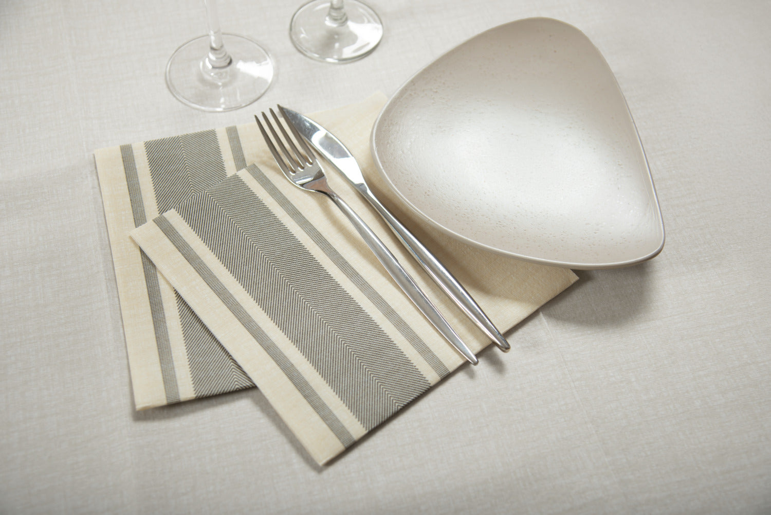 Serwetka w nowoczesny wzór w jodełkę - tekstylny charakter i wysoka jakość. 40x40cm, Składana na 1/4. Materiał: Airlaid