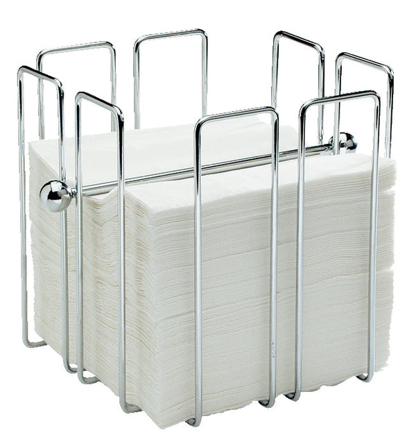 Chromowany metalowy serwetnik. W tym obciążnik. Na ok. 150 serwetek złożonych w 1/4. Dostawa bez serwetek.